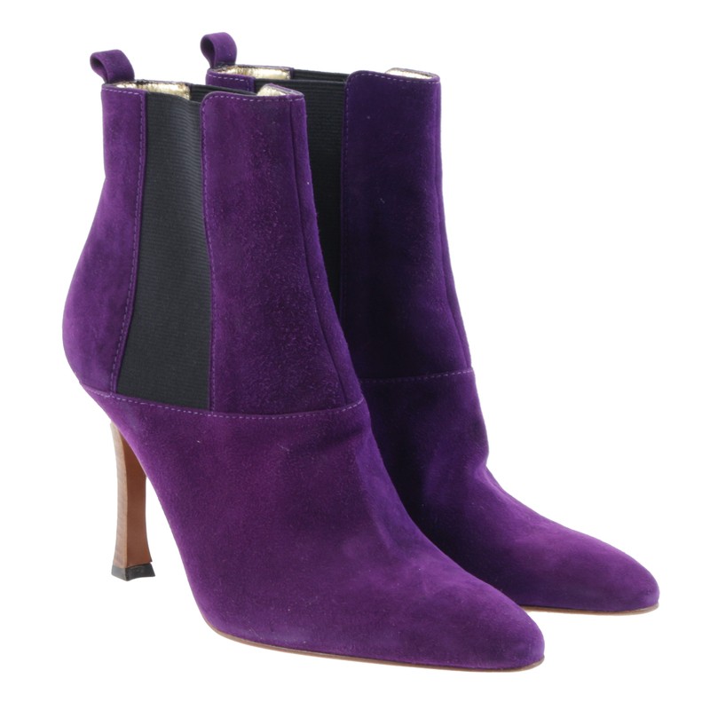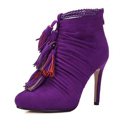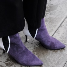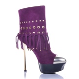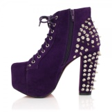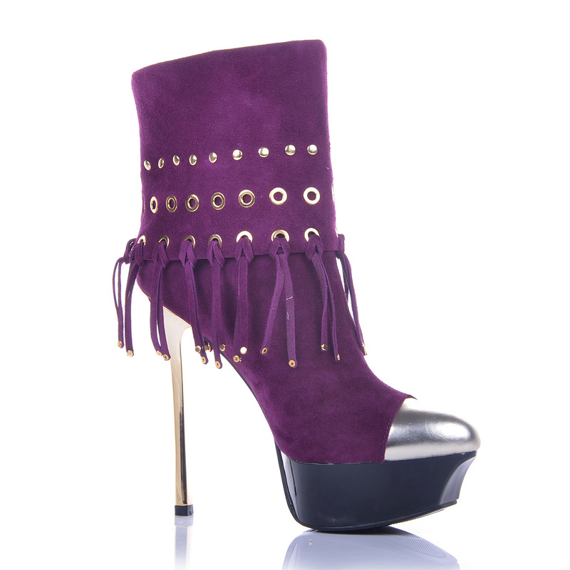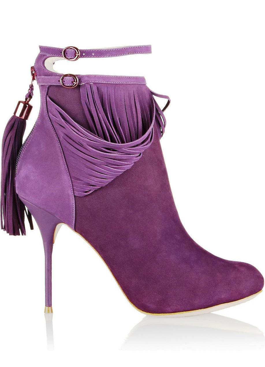 Violet is one of the most mysterious and mysterious. Such clothes are far from being for everyone: they make them look fat by adding extra kilos, and someone gives them deathly pallor. But this cannot be said about purple shoe boots - any fashionista can wear them calmly, provided that the outfit is chosen correctly.