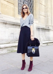 Low girls with beautiful slender legs are advised to wear ankle boots with high thin heels. Maxi skirts or trousers are used if the legs of their owner are not quite perfect. Long-legged beauties can safely wear socks or leggings in combination with such shoes.