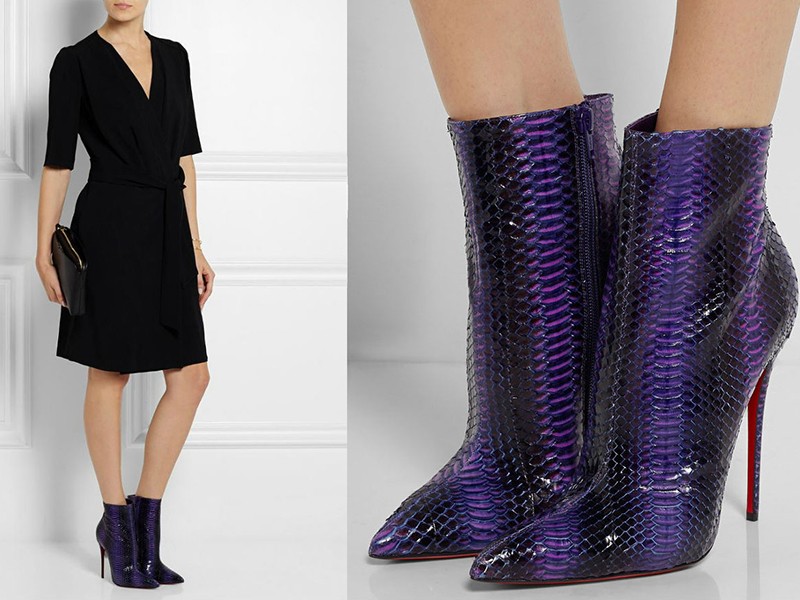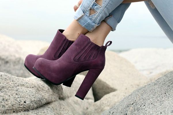 Purple shoes give their owner a share of mystery and charm. Not every girl knows what to wear ankle boots of this color.