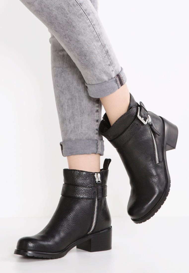 - Classic black ankle boots look good with strict straight dresses, pencil type skirts, trouser suits.
