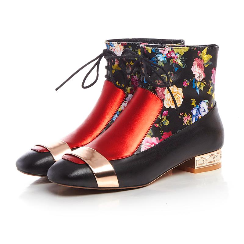 Animalistic, floral, abstract compositions are masterfully combined with a contrasting sole and heel.