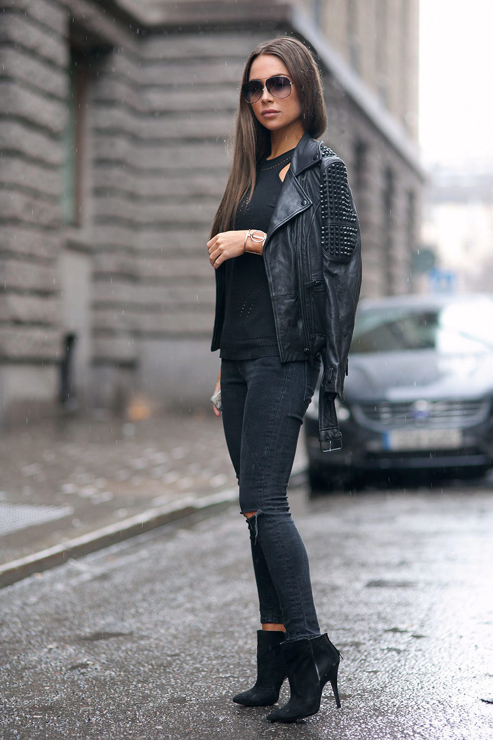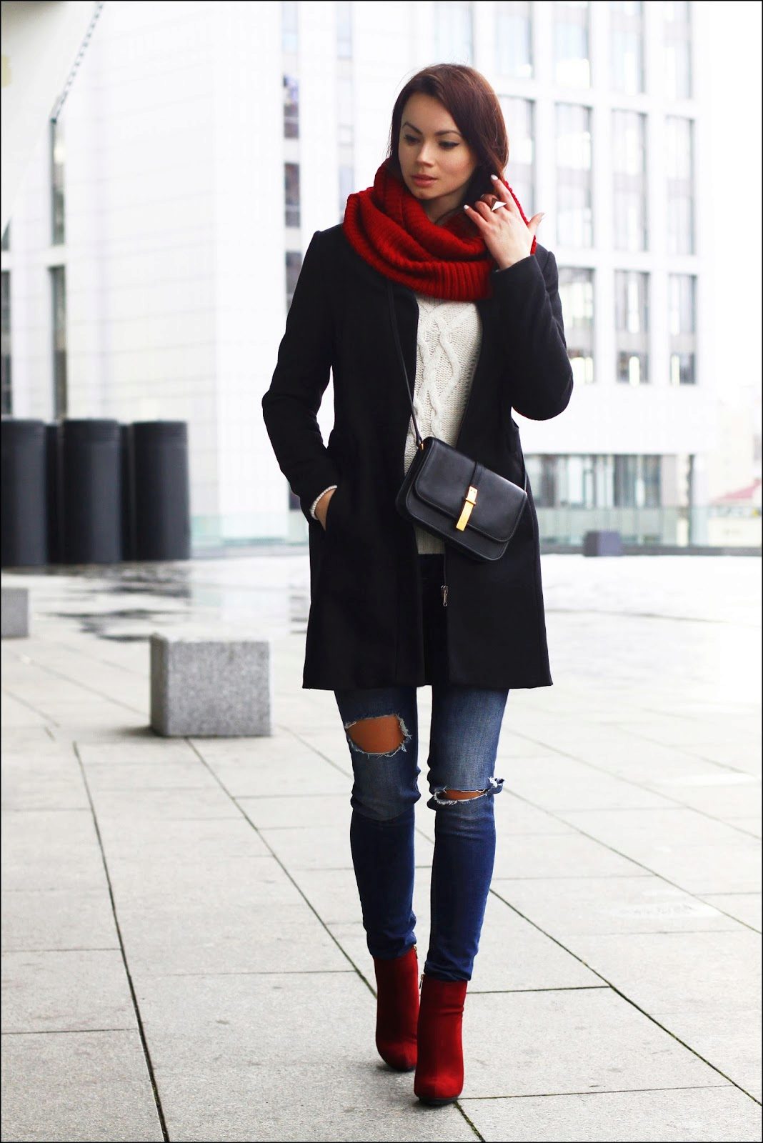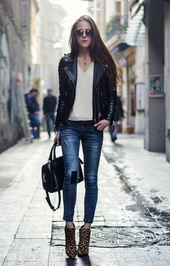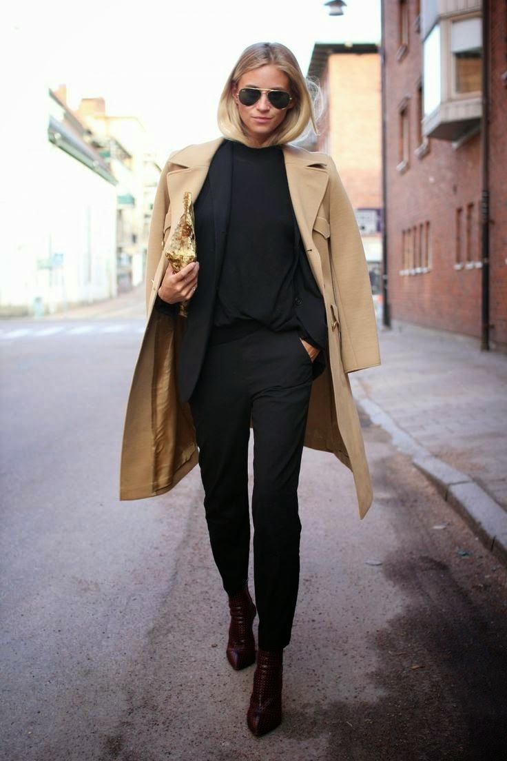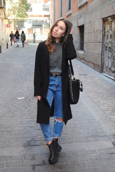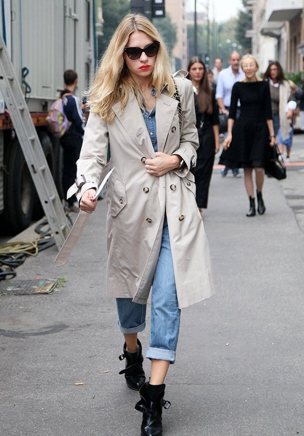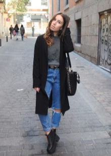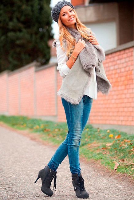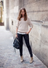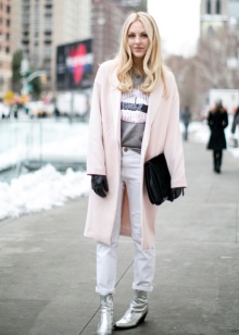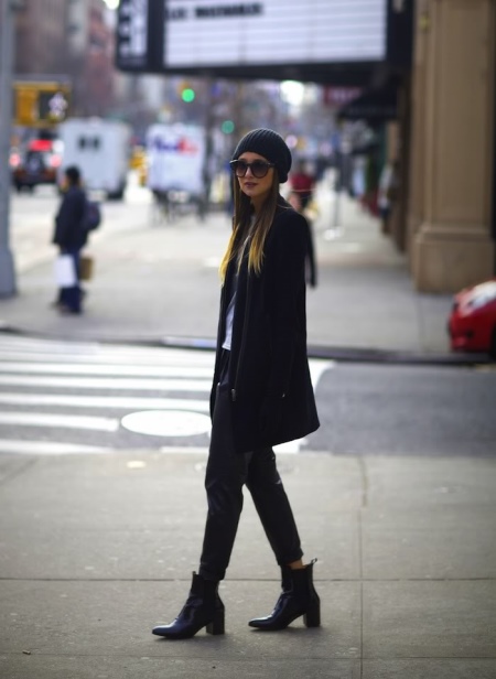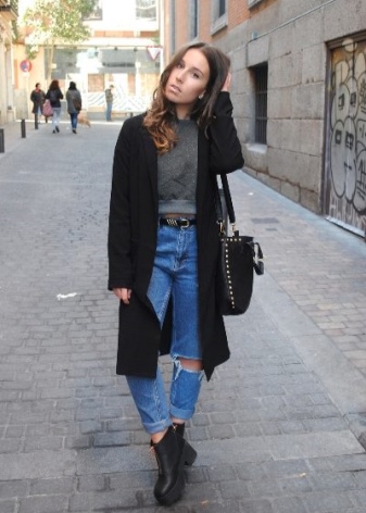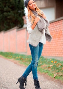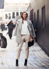 Ankle boots are not combined with voluminous, long outerwear and classic trousers. It is better to replace fur coats and long jackets with raincoats and down jackets up to mid-thigh length. Ankle boots with a coat look elegantly.