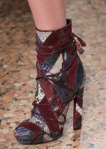 Summer ankle boots are made of thin varieties of natural leather, suede and textiles.As a woven base in the production of used denim, velvet, mesh, lace, satin, satin, cotton. The texture of the material can be matte, varnish, with a metallic sheen and textured. The metallic tones of this season are bright and saturated.