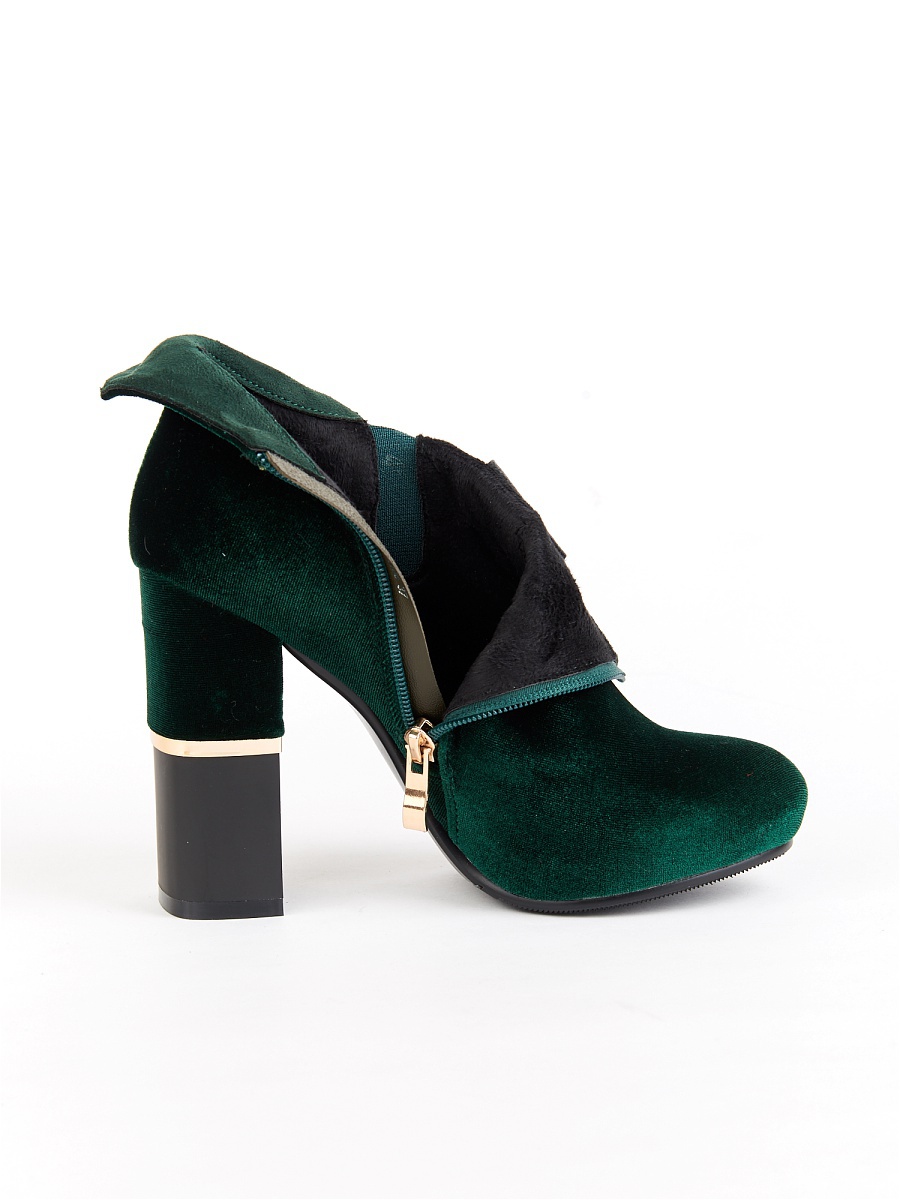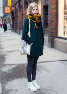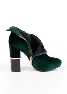 Emerald ankle boots on a platform with a sharp toe will be a successful completion of the ensemble consisting of a snow-white tunic and shorts of a similar shade, and a short cloak in the same tone as the shoes.