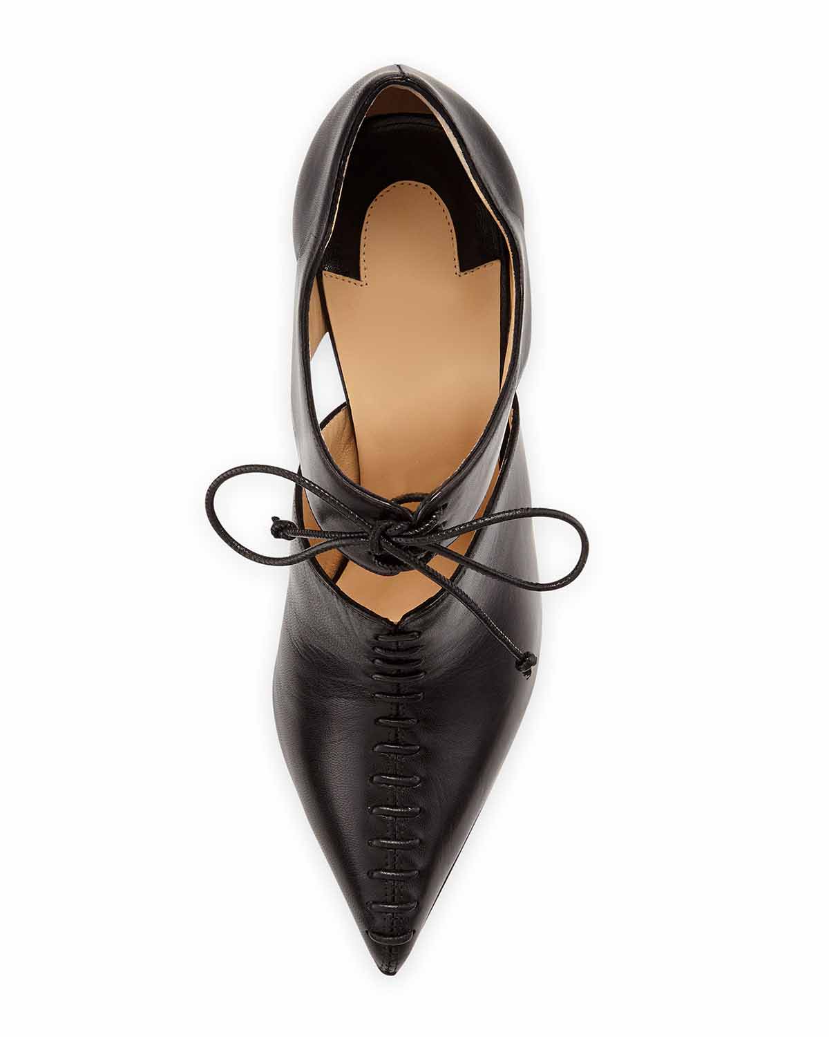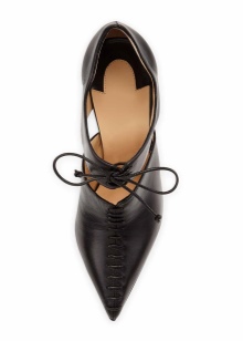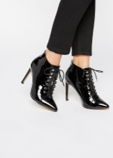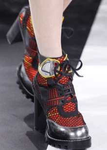 World brands play with this type of footwear, decorating it with new decorative elements, accents and additions. For example, the Prada brand presented thick-heeled booties with laces in two rows. Christian Louboutin does not go beyond its corporate identity and offers classic patent leather shoes with red sole. Lacing in his models usually has no more than 2-3 rows.