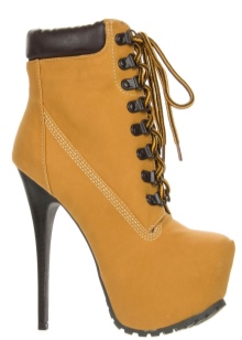 This category includes all kinds of ankle boots with laces on the heel. Fashionable women who prefer a free style of clothing, we can recommend the model on the platform with a thick square heel. Stylists recommend choosing concise models, without intrusive décor, as the lacing itself is the main focus of shoes.