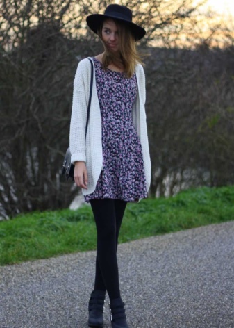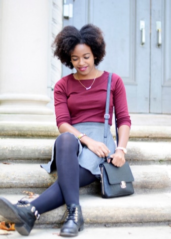 Short dresses and tunics with leggings and colored tights will look original, stylish and bright. Just in the spirit of the upcoming spring of 2017. Stylists recommend to choose the color of tights, leggings or prints of the upper part of clothing to match the laces of ankle boots.