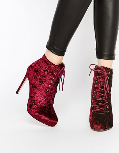 Boots on a hidden platform and with a heel reaching 10-12 cm are especially popular. Romantic ankle boots are always decorated with ribbons, banks, fringe, and textured inserts. The color palette here is quite diverse: red, blue, green, purple.