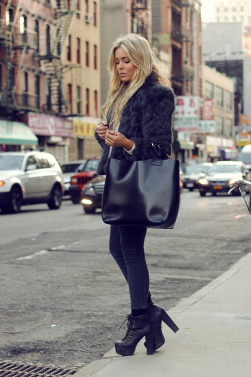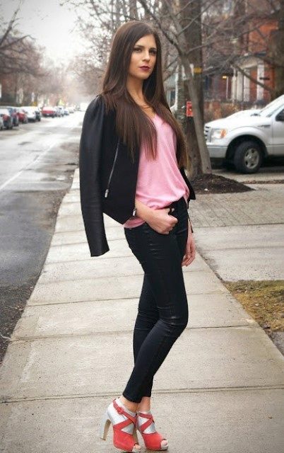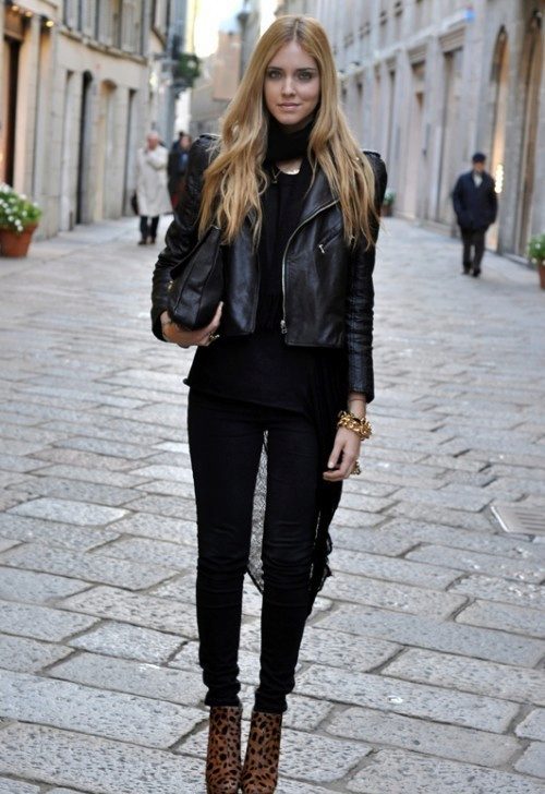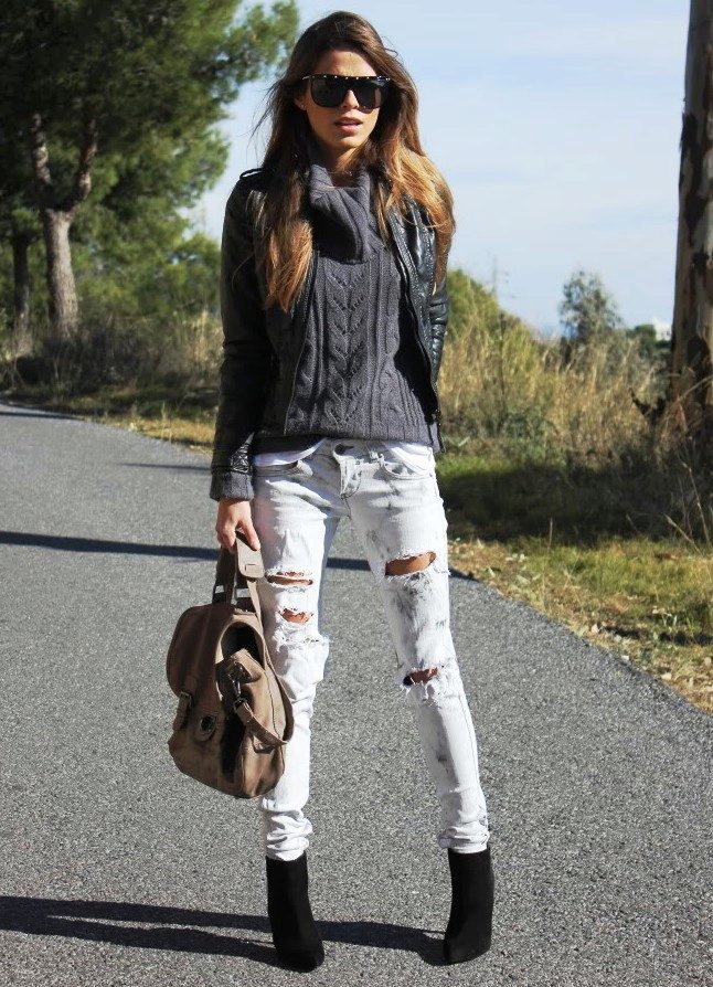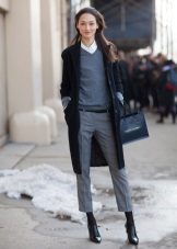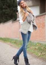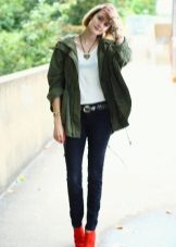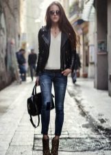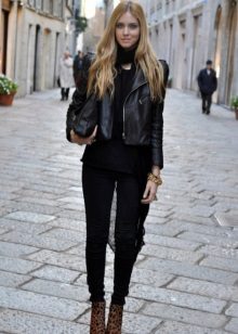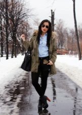 In cold weather jackets and jackets should be worn to ankle boots. In autumn and winter, the list of suitable outerwear is quite extensive. There are leather leather jackets, bombers, and classic coats, parks, and down jackets. In winter, it should be warmed models.