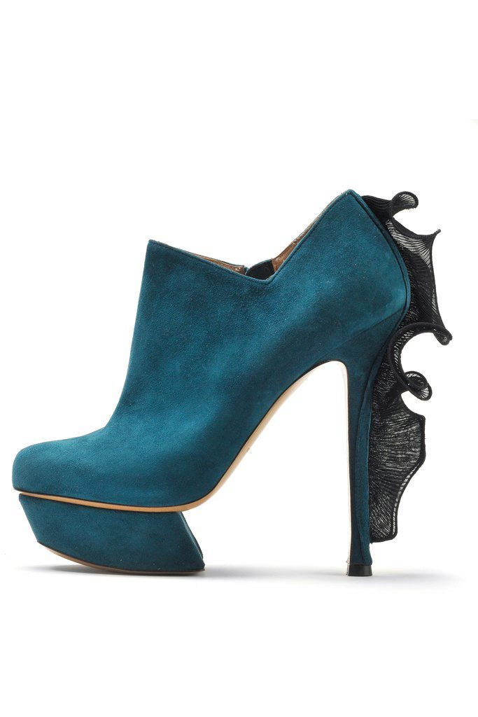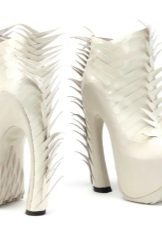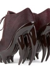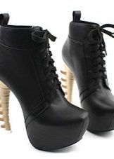 Equally important in creating the image and decor. There are everyday ankle boots, the most concise, which do not see the extra details, not counting the clasps. But most often such half boots decorate all the same. As a simple decor, use metal parts in moderate quantities, for example, chains, rivets, spikes. Romantic image involves the use of yarn, lace, ornaments, rhinestones, stones, fringe, fur parts. But in outrageous style, you can find large bows of fabric or leather, fringe, fancy appliqués, as well as absolutely fancy heels, especially the hairpin, for example, made in the form of ornate patterns.