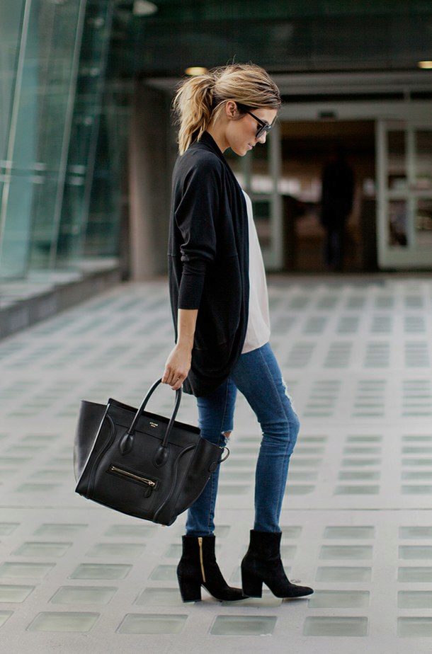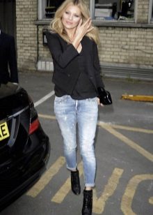 The most versatile solution are jeans and pants, and with them, and overalls, midi shorts and loose short, because depending on the model, they will be appropriate in almost any situation. Skinny models, shortened or tucked underneath, torn denim, “boyfriends” - all this can be combined with ankle boots. Different length of trousers will fit, you should limit yourself only to the width of cut. Loose models, flared, and even more so with classic shooters, if we are talking about pants, will hide shoe boots and most likely create an imbalance in the image.