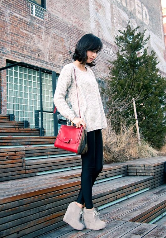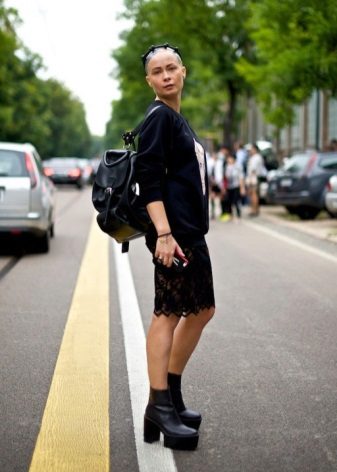 Leggings and leggings are great combined with massive models on thick soles, creating a certain contrast. Especially if there is a free top in the set - a shirt, a tunic, a sweater. In general, the top is selected depending on the image, since both a classic shirt and a t-shirt with a trendy print in combination with a jacket or jacket can be equally stylish for ankle boots.