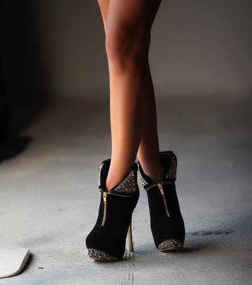 If the calves and the legs themselves are very thin, then you should abandon the massive models with a thick heel, preferring the average height, width and conciseness in details. More dense legs, on the contrary, suitable shoes with a thick heel and with no clutter of jewelry in the calf area. High heels and studs will be a salvation for young girls, because they visually lengthen the figure.