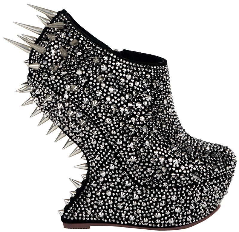 The decor can be placed on separate parts, for example, the heel or the toe, or on the entire visible surface. It all depends on the designer's imagination and customer taste, as well as her willingness to wear something original. In the presence of large jewelry or a large number of them, boots become the main focus of the image, and then you should be prepared for the fact that the rest of the clothes will have to be modest.