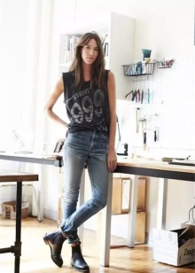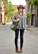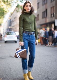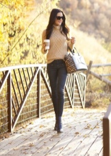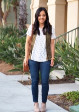 In the creation of any image must take into account the model of shoes. The best combination of pairs of low heels are skinny pants, jeans and leggings. If the model's bootleg follows the contours of the legs tightly, the pants turn up, leaving a strip of skin between the shoes and the pants. In the case of a wide bootleg ankle trousers tucked inside.