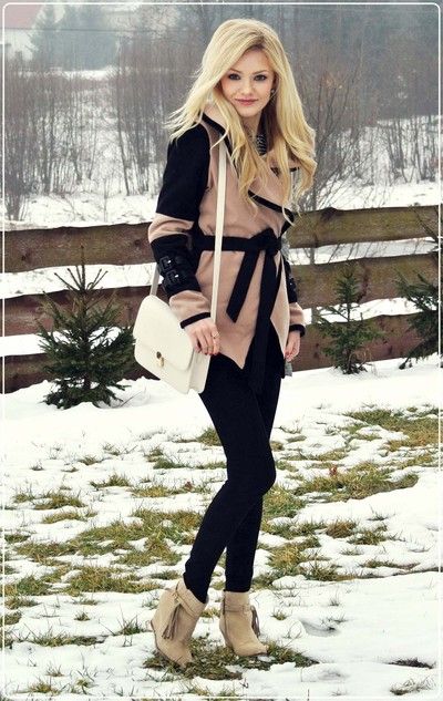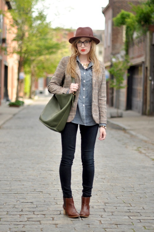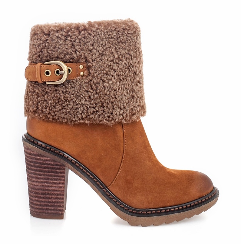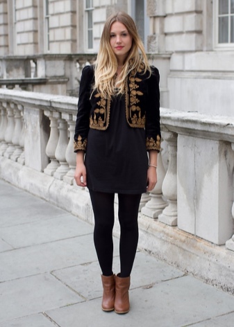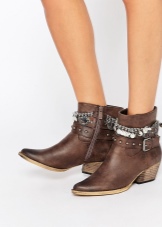 Classic couples with discreet decor can be worn with a moderate style or a strict business kit. For example, brown ankle boots with a small heel with rhinestones blend harmoniously with an elongated classic black jacket and a tonal hat.