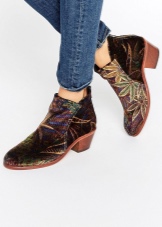 Some lines have a low heel-glass or small wedge. These couples, richly decorated with decor, are especially in demand in the summer.Often in the role of decorative elements of ankle boots are various bows, brushes and fringe.