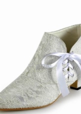 Lightweight boots on the platform and wedges are elegant and airy. Snow-white models imitate leather sandals with laces on the rise. Flower compositions of textiles can be decorated with rhinestones, imitating dew drops. The white color of shoes gives style sophistication and belonging to a special status.