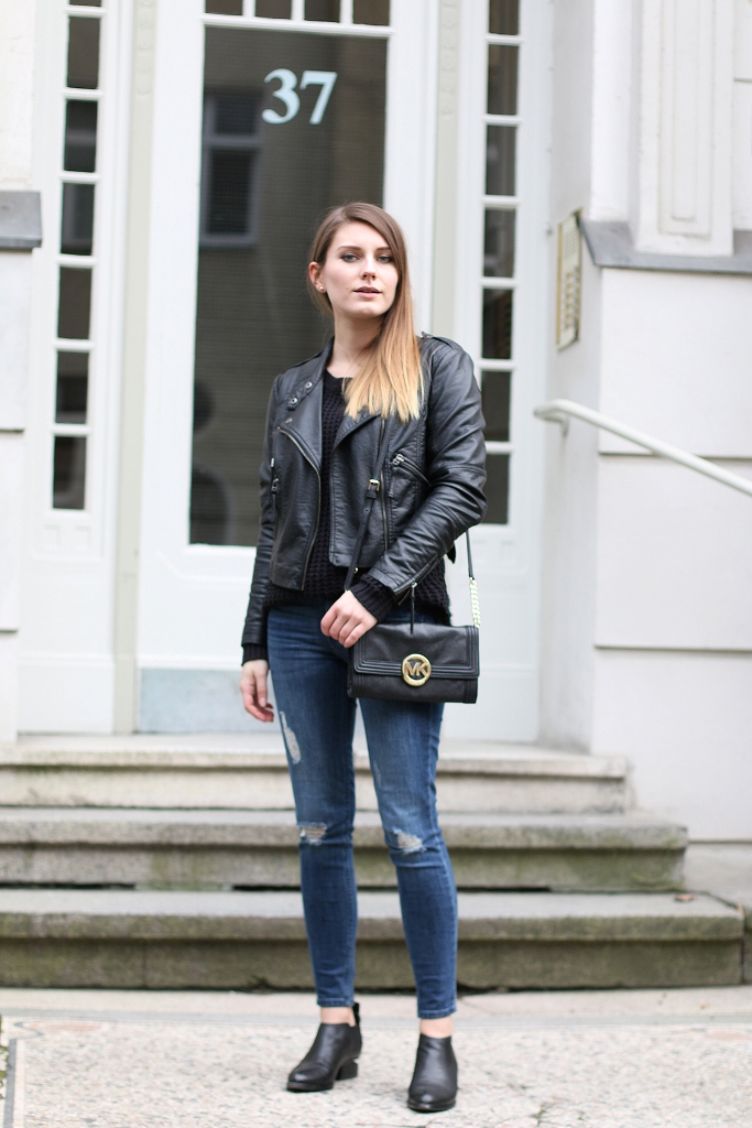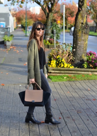 Black square heel trends are well suited to trousers or jeans of various textures. A spectacular bow can be made up of blue jeans, a black jersey, a swamp pullover and black ankle boots with a pointed toe.