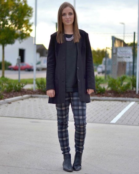 Spring and autumn images adhere to the short length of outerwear: to the middle of the thigh. A beautiful leather pair with a low-top can embellish a shirt, an elongated jacket, and slim plaid trousers.
