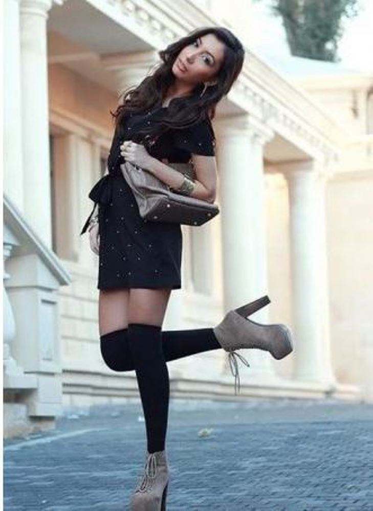 - Pantyhose must be selected according to the color of the shoe to make legs slimmer. Long-legged beauties can wear leggings or knee-highs with closed models of shoes. The styles of half-boots with lace inserts are suitable for romantic looks, and the lacing should be combined with more strict dresses.