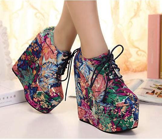The platform is a flat, straight sole, and the wedge represents the connection of the heel and the sole, which rises towards the heel. Shoes designed for everyday images.