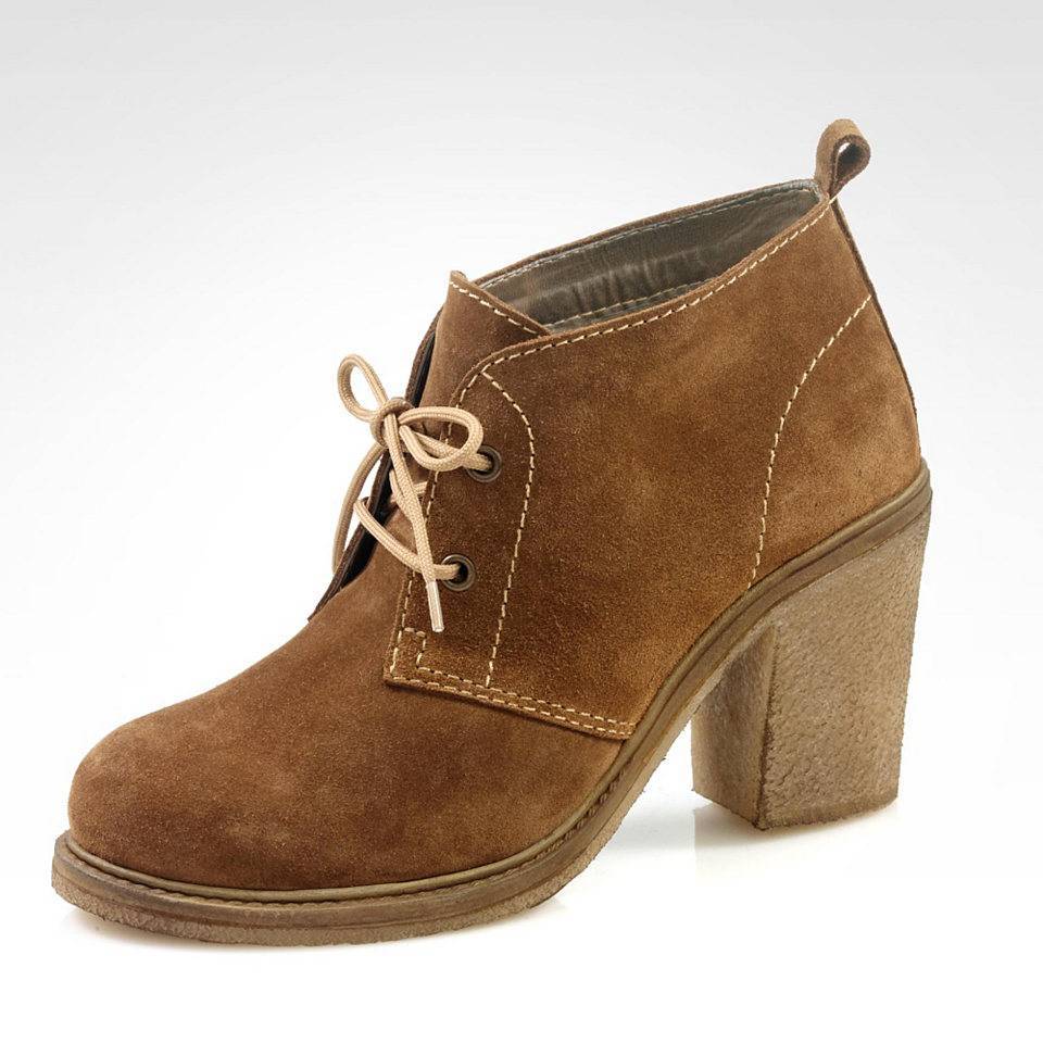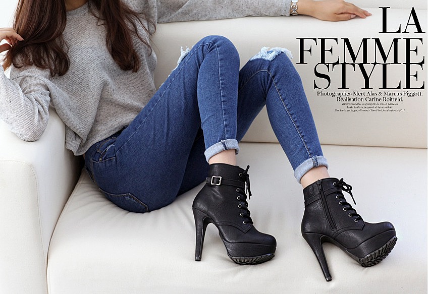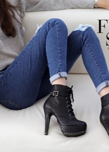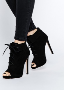 - Stiletto heels give gait lightness and grace. It is better to take models that can be beautifully laced. It is not necessary to combine women's ankle boots and mini skirt. Such a choice is able to visually spoil even the most beautiful figure.