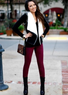 Beige shoes will help make the image more slender. With beige ankle boots, you can create a bow in the style of a disco or a romantic image, adding to them a light cream blouse with lace and small buttons. They can be worn with a large bag, decorated with inserts of various colors or a bright sweater. But this advice is more relevant for girls with dark hair. Autumn-colored boots love to be paired with accessories or clothing in red color.