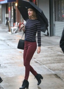 Fashionable black ankle boots look great with a red skirt sun and black tights. But it is not necessary to choose classic models and colors of ankle boots. There is a very rich color palette, you only need to figure out how to choose the right colors in clothes for bright shoes.