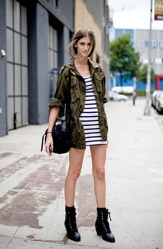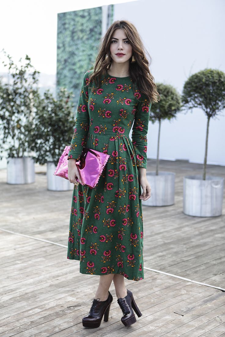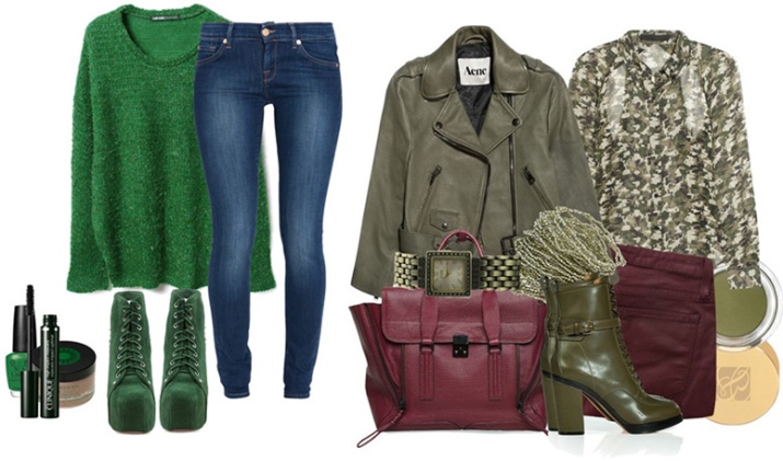 To make the pink color in clothes less cloying, you can wear a pink dress and green ankle boots. With green shoes, things of all shades of blue and other cool colors always look good. These can be jeans, leggings or a tunic. By purchasing green shoe boots, you can choose a pair of them in a red color, but only if the rest of the clothes are in neutral colors.