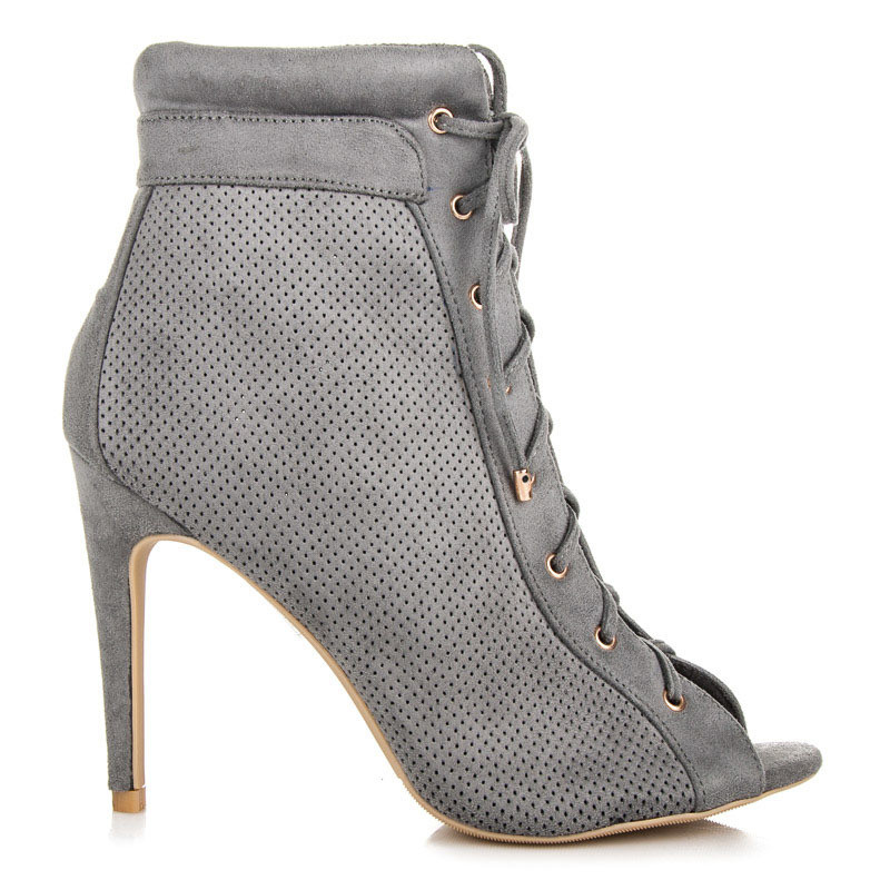 Ideal shoes with a hidden platform. Despite the fact that the heel can reach 10-12 centimeters, it is very convenient and comfortable. Summer models of ankle boots in a romantic style can have a perforation in the upper part, an open toe or heel.