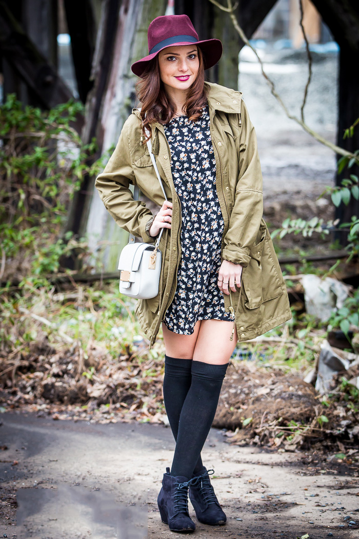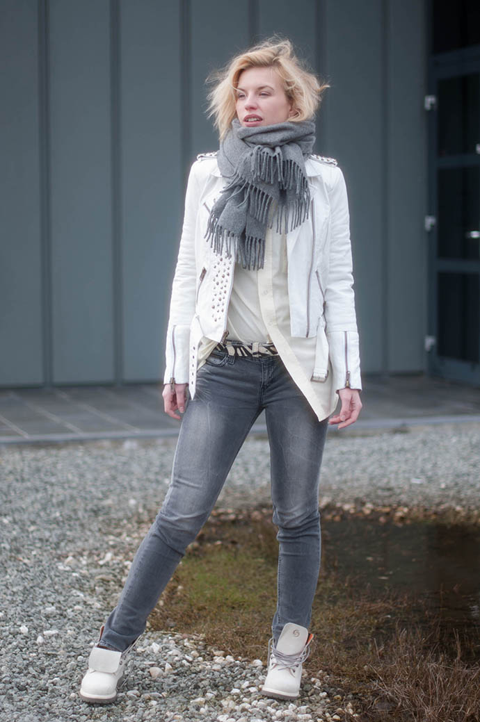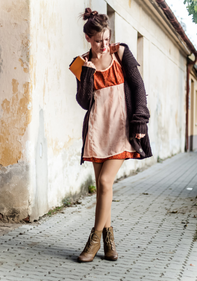 Different styles of clothes and lace-up ankle boots