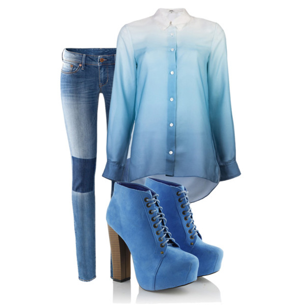 Blue shoe boots look harmonious when all other details of the wardrobe are designed in soothing colors. Win-win can be called a variant in which solar or green colors in clothes and blue shoe boots are combined. The dress is blue and the same shoes - such a bow has always been considered one of the models of elegance. It only needs to be diluted with the right accessories and you can safely go out.