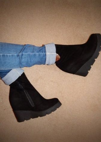 If you set a goal and choose ankle boots with high wedges of foamed rubber, wood or rubber, loose skin or suede, such models will be as easy to care for and will last more than one season, maintaining their original appearance.