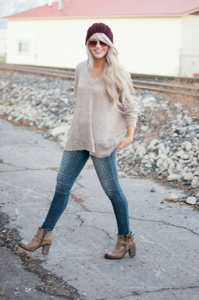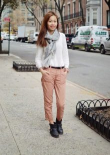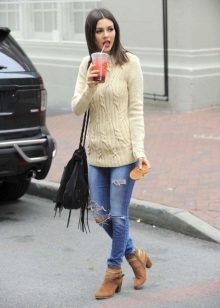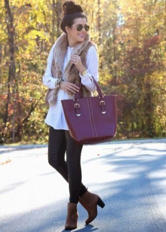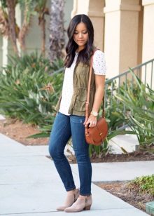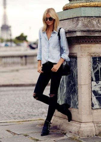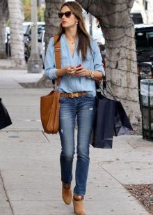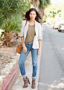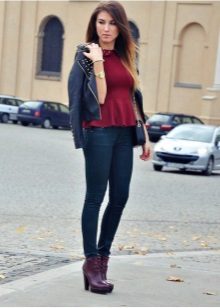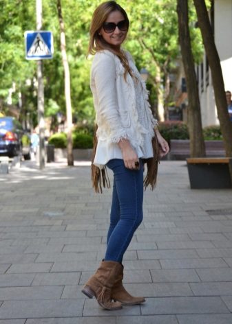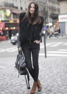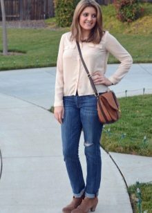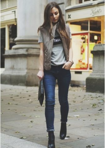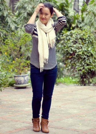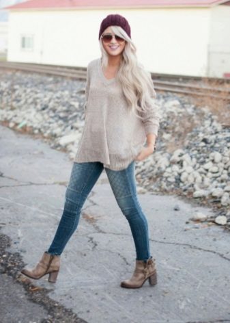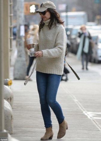 In combination with leggings, narrowed and straight trousers, and also jeans of certain models, ankle boots will look quite interesting. Among the denim models, the skinny skinny jeans and jeans - boyfriends with small cuffs will be the most appropriate.