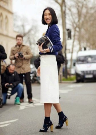 Ankle boots combined with light shorts made of various fabrics look very unusual and stylish. Costume, jeans, satin, tweed or linen - any options will do, and depending on the material, the choice of ankle boots will fall on one or another model.
