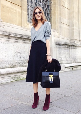 Ankle boots look feminine in combination with skirts and dresses of different models, but you should not overdo it in this matter, because a too short fitting product, in combination with a too high heel, will look simply vulgar.