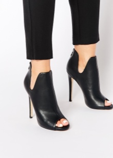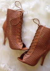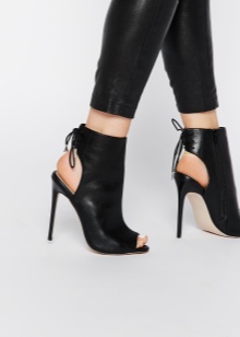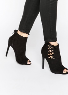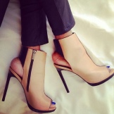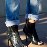 Ankle boots can be exclusively with an open heel or (most often) with an open toe and a heel. Such models are suitable only for the summer season. The foot remains as open as possible, and the shoes are held on the rise and ankle.
