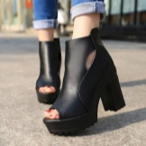 Models with an open cape can have a very small neckline or almost completely open the lady's fingers. The first option would be a great solution for cool autumn weather. Products with a small neckline can be worn on tights. Shoes that completely open your toes, will be the perfect solution for the summer season, and she puts on her bare foot. Such models can be complemented by an open top.
