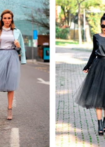 The combination of open models and the length of the skirt does not suit all ladies. This ensemble is better to choose the owners of tall. It is recommended to choose ankle boots with high heels-stiletto. For girls with small stature, such a kit will not work.