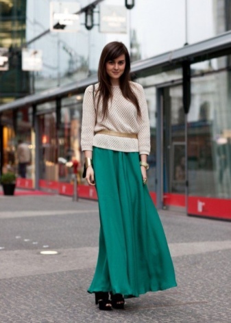 Open shoes are very impressive and look in a coquettish way with a short skirt. The cut of the product can be completely different. Stiletto shoes are in harmony with straight or tight-fitting skirts. Models with a wedge perfectly complement the flared or wide skirt outfits.