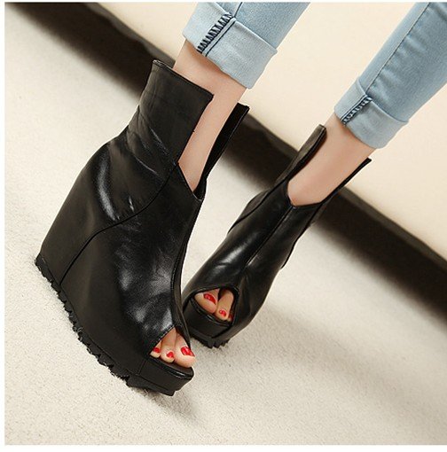 Open wedge shoes will be a great solution for casual wear. Such models are suitable for ordinary walks or shopping. The wedge will allow the lady to look taller and slimmer and will not let the legs get tired even with prolonged wear.