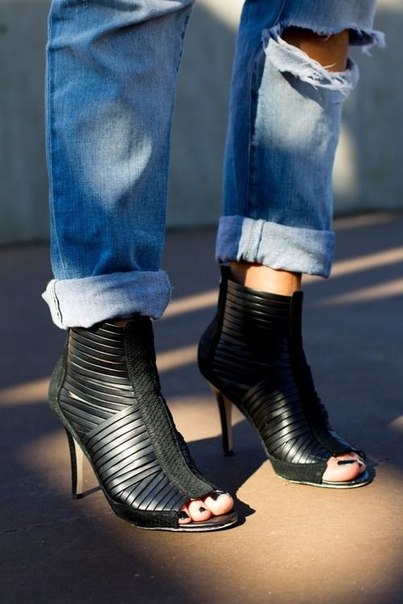 Sexy open shoes perfectly complements the outfits with skinny or tapered jeans. Lovers of free cut can bend the lower part of the leg to open the upper part of the shoe.