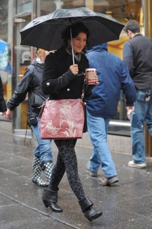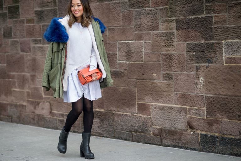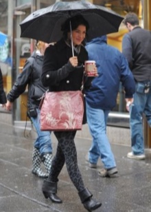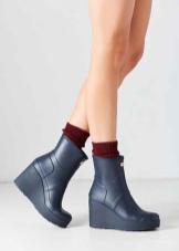 As for tights, they should repeat the shade of rubber shoes so as not to visually cut the silhouette: it is recommended not to wear black or brown tights under light or colored boots. The best solution would be flesh-colored tights.