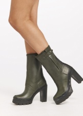Women's rubber ankle boots are made of modern material, which does not allow moisture inside the shoe to be easily cleaned from dirt. This material is elastic and easily takes the form of the foot, so the boots are not rubbed and are always comfortable. But the heel is made of a different material, so there are a lot of varieties - this is a low heel, and a high, and a stud, and a platform, and just a thick sole.