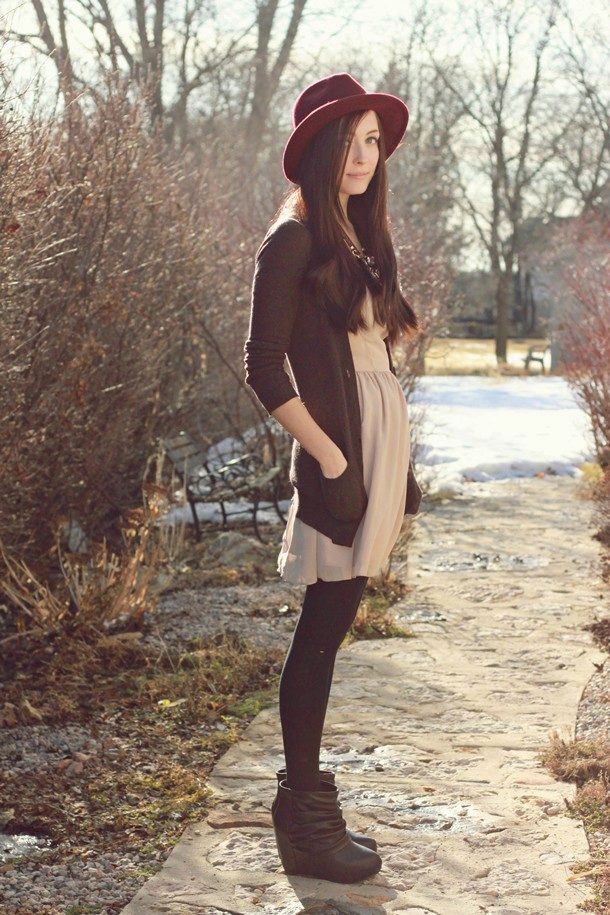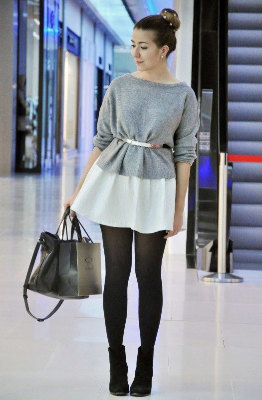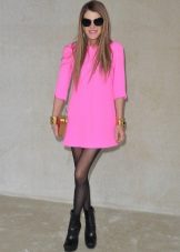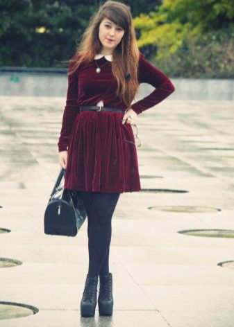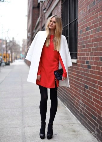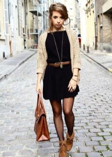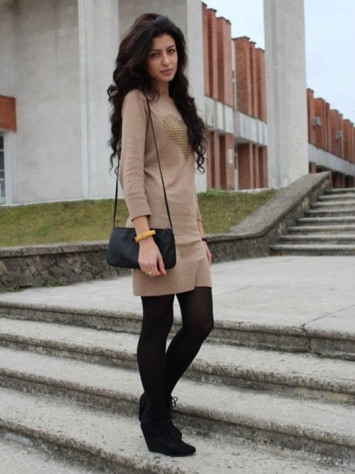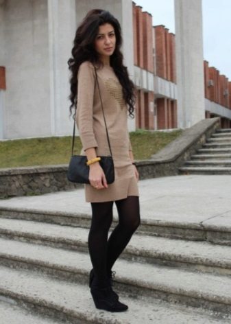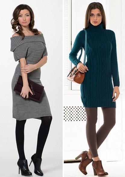Knitted dresses allow you to wear leggings or leggings. At the same time select their color carefully, it must match the shoes. Tights preferably wear dark colors, and the dress - short.