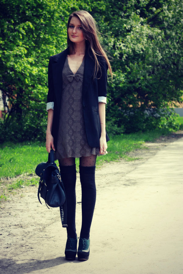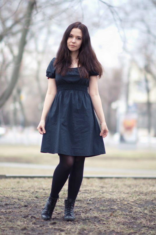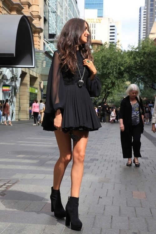 The good news is that dresses can be picked up of almost any length. Short dresses are an excellent choice for owners of long, slender legs. Ankle boots accentuate the slimness of your ankles and will definitely help you look irresistible. Black tights and a short dress - a stunning option.