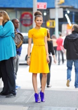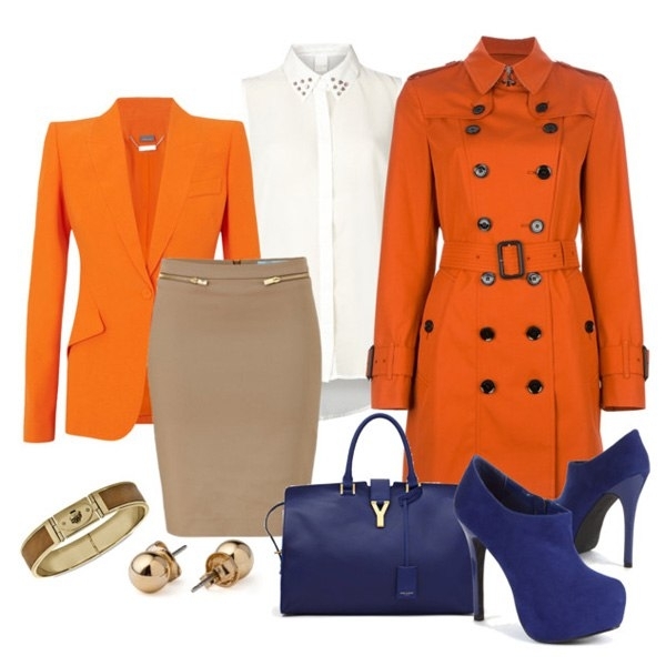 Red and orange are also suitable for blue shoes. The main task is not to overdo it, as each color is self-sufficient. If you chose this color range, then it is necessary to give preference to ankle boots on a stiletto.