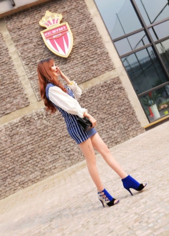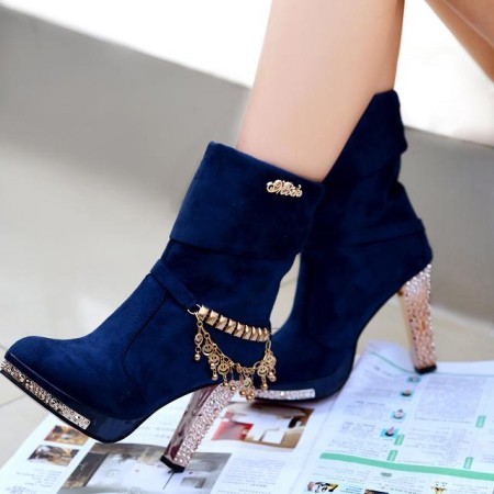 The most spectacular image is blue boots and a dress. Maybe at first it will seem a complete bad taste, but it is not. If the dress will be in tone with the shoe, and the shoes will have beautiful iridescent rhinestones, then your image will undoubtedly be the best of the best.