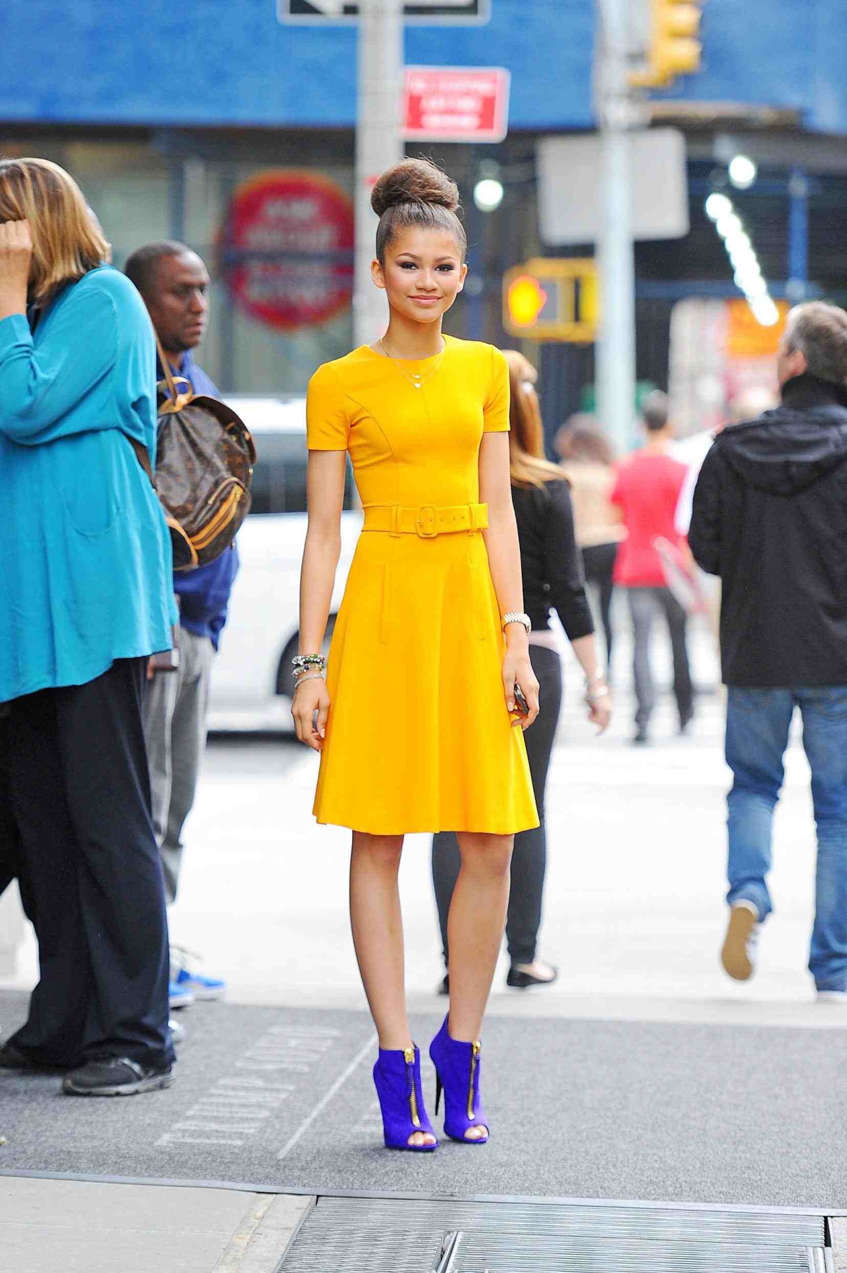 As for clothes, there is one most important rule that must be remembered: a dress should be above the knee. Heel, platform or wedge is a must when choosing.